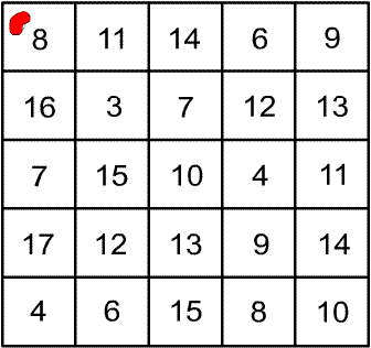 Instrucciones: cada jugador toma los frijoles de un color y por turnos cada niño elige dos números del tablero pequeño, coloca los objetos sobre ellos, los suma y busca el resultado de la suma en el tablero grande y lo cubre con un frijol.