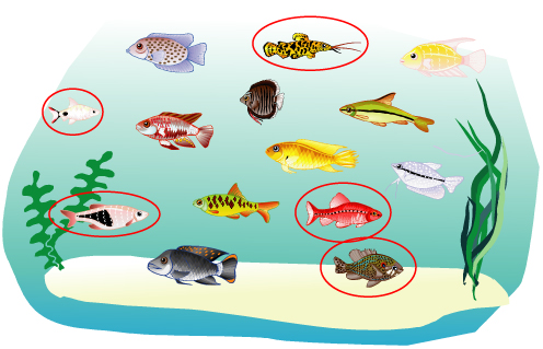 Con un color marca los peces que están viendo hacia la derecha.